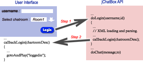 In addition to objects allowing designer to manipulate chatrooms, we provide an API to integrate designer's User Interface with jChatBox script. The API is based on callbacks.