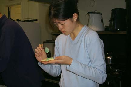 After the cookies have been baked, the Youth Group decorates them with icing. |