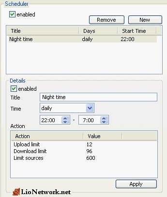 פעולות יכולות להתבצע באופן יומי או רק בימים מסויימים של השבוע. לכל פעולה יש זמן התחלה (starting time) וזמן סיום (Ending Time). אם אין אף פעולה שמוגדרת בזמן מסויים, eMule תשתמש כברירת מחדל בערכים שהוכנסו בהעדפות (Preferences).