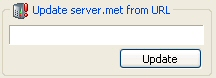 רשום את כתובת האינטרנט (URL) לקובץ ה-server.met ולחץ על כפתור Update. בלשונית היומן (log) תוכל לראות כמה שרתים נוספו בעקבות העדכון.