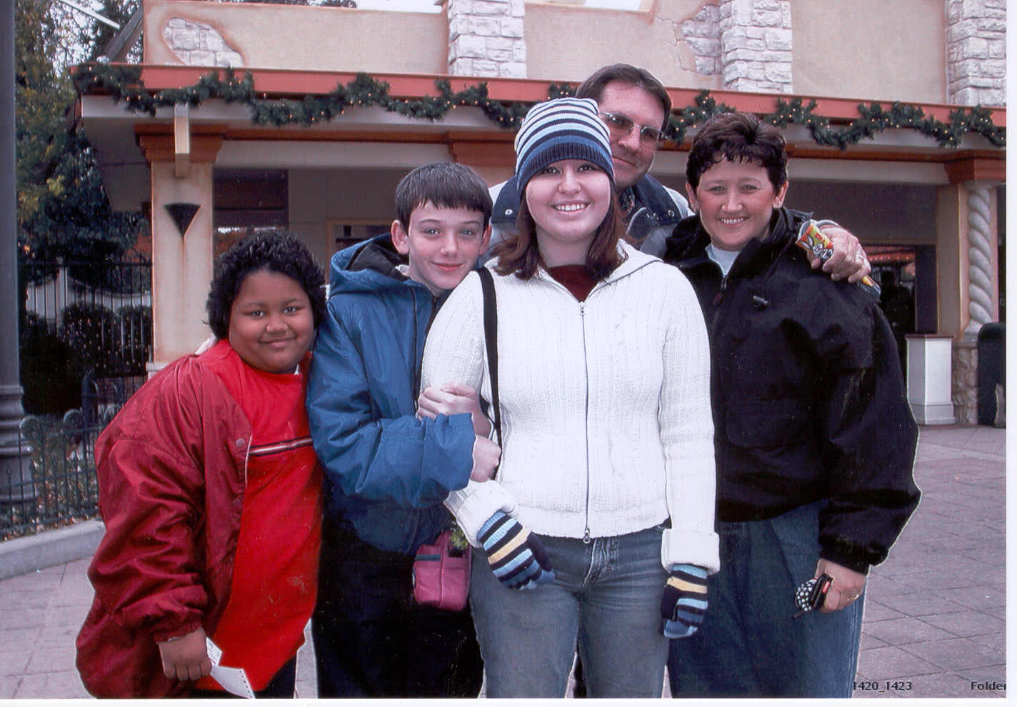 < this was christmas 2002 at six flags in arlington. that's my sister, my step bro josh, me, my daddy and my step-mom sherri