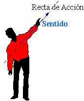 Ahora extiende tu brazo y presiona sobre la pared más cercana; hacer fuerza con el brazo extendido nos permite ver los elementos que encontramos dentro de las fuerzas (por supuesto que estos atributos son imaginarios). Con un color señalamos la recta a la que pertenece la fuerza que hacen los brazos de este hombre (La recta es la dirección de la fuerza que ejerce el hombre), la flecha indica el sentido (hacia donde hace la fuerza). En el lenguaje cotidiano dirección y sentido son sinónimos pero la física tiene sus propios códigos y aquí estos dos términos son muy distintos.