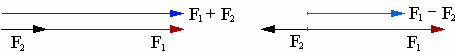 Así que si dos fuerzas van a la izquierda podríamos decir que son negativas y si van a la derecha, diremos que son positivas. (Atención, la elección positiva o negativa de los sentidos es arbitraria)