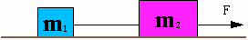 Acá tenemos dos cuerpos de distintas masas. Sólo con ver el sistema sabemos que: m1 es el menor; sobre m2 actúa una fuerza.
