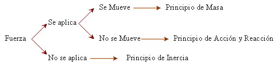 Resumiendo, siempre tenemos dos opciones: podemos o no aplicar una fuerza. Si no la aplicamos una fuerza exterior estamos frente al principio de inercia. Si la aplicamos una fuerza exterior, también tenemos dos posibilidades: el cuerpo puede moverse o quedarse quieto. Si se mueve, estamos frente al segundo principio de Newton, el principio de masa. En caso de que no se mueva estamos frente al tercer principio de Newton, el principio de acción y reacción.