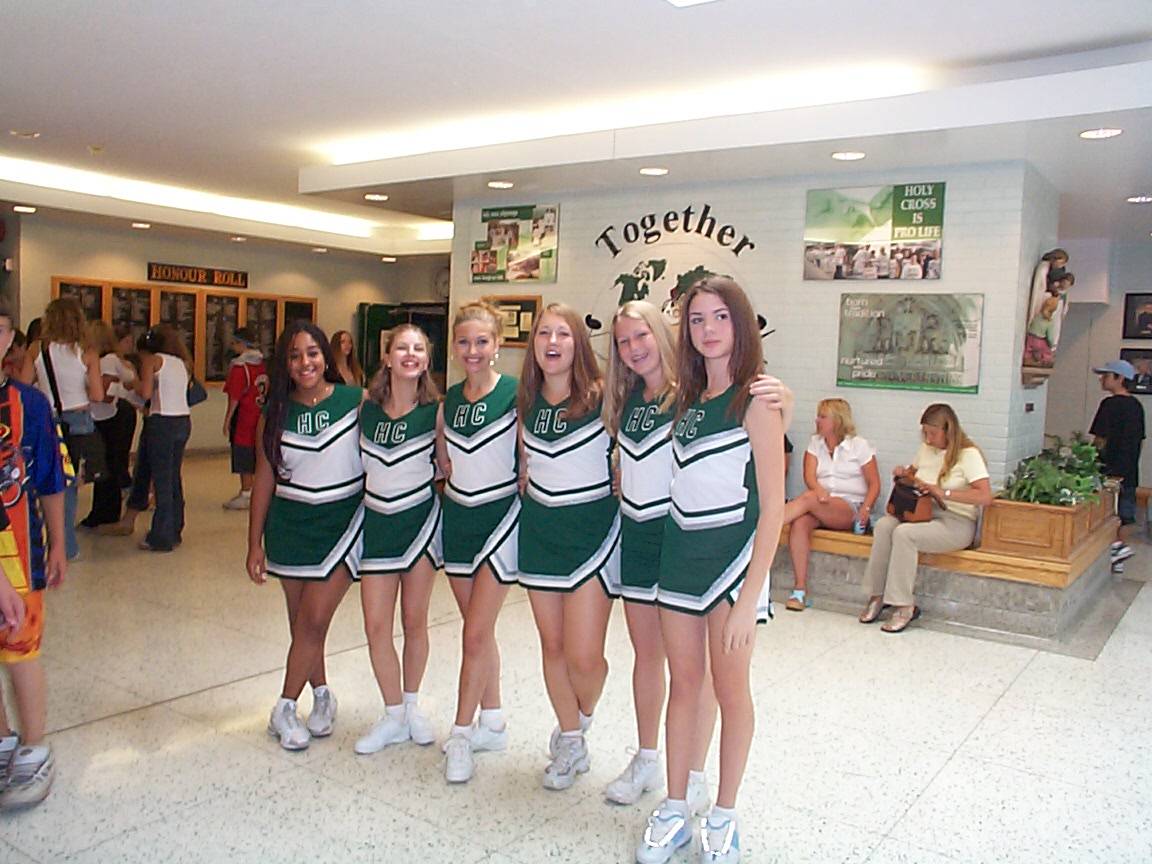 Holy Cross Secondary School August 27th 2003 A few of the girls were around helping out the incoming grade nines to their classes, letting them know about what it's like to be at HC and promoting cheerleading tryouts. Pictured (L to R) : Ciera, Amanda A, Amanda D, Jenn, Maggie and Nadia.
