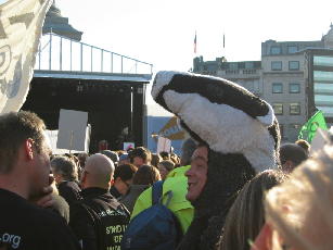 Saturday morning was a slow one but E&I finally got our acts together and went to Trafalgar Square for the big Environmental Demo which, as it turned out, was more of a publicity event for famous people to feel good about themselves and teenie-boppers (Does anyone still use that term?) to pretend to have a social conscience while cheering on their favorite bands (KT Tunstile & Razorlight, respectively) or seeing a famous actor from the hary Potter movies (Miranda Richarson who played... um, exactly who?).