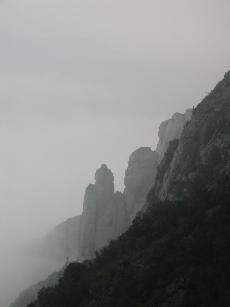 We got to Montserrat train station and then took the cable car up the cliffs – a 5 minute ride, taking you nearly 1000m up in the air to the monastery. Although it’s such a tourist trap, it looks a bit too much like Mont. Tremblant. The really fantastic thing here was the view. Of course, it was overcast to the view wasn’t so hot but the clouds certainly made it very atmospheric: