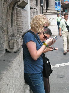 And we rolled into Statizone Termini on time, with an hour and a half to find our hotel before meeting Jenn (my brother Mark's wife who's in Rome for research). But on our way there, we bumped into her on a street corner. Yay! Let the games begin. But first I desperately needed an Italian coffee and something to eat! We had no trouble finding such a place and enjoyed the reviving qualities of the strong coffee.