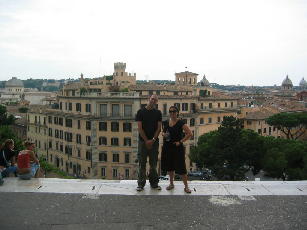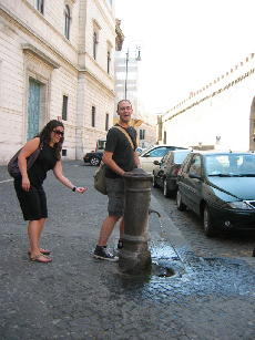 After walking and walking and seeing all of the above, we decided it was time to chill out and eat and drink. So we went across the Tiber river to Trastevere. There was a very bohemian section, packed with restaurants and bars. We had some aperatifs, and then walked around in circles for a good 30 min. trying to decide on a restaurant. Typically, we chose one of the worst restaurants any of us had ever been to. For starters, the food was bland, which was criminal. How despressing to be in Rome eating bland food! They had a small selection of vegetarian dishes, 2 of which were unavailable. The gnocci that Stephen received turned out to be laced with beef, and therefore inedible. How do you complain in Italian? To a staff who look like they are about to loose it? So we didn't complain to the staff, but to each other. Not making for a lovely meal... They forgot to bring Jenn's wine, and then to top it all off they espresso was burnt.
