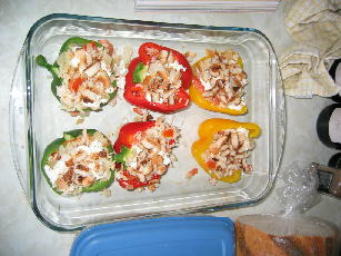 Stuffed peppers! Mmm. Much thanks to Janos for supplying us with the perfect cookbook. (I dream about the recipes at night, imagining I’m eating those pictures of…) Note: That's Elisabeth talking, not Stephen. I don't dream about food.