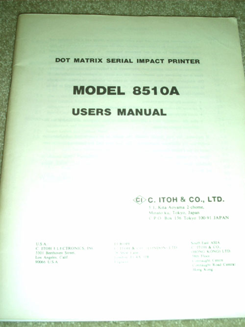 Dot Matrix Serial Impact Printer Model 8510A Users Manual
