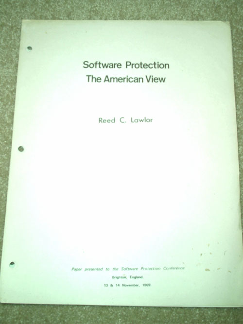 Software Protection The American View, by Reed C. Lawlor (an Essay)