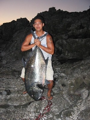 Brother Darcy with 77lb Ulua, also taken in Ka'u (he also caught the 25lb fish in the other picture. the person holding the fish is his dad Delbert Home page2 |