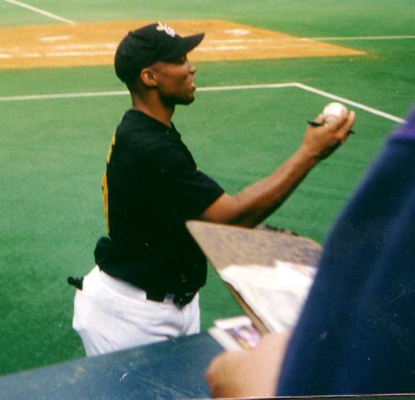 Juan Gonzalez tries to look cool in shades during warmups 2002.