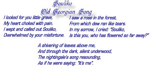 Old Georgian Song - "Souliko" become very popular in Europian countries. The song presented in English, French, German and Spanish languages by Besiki Sisauri.