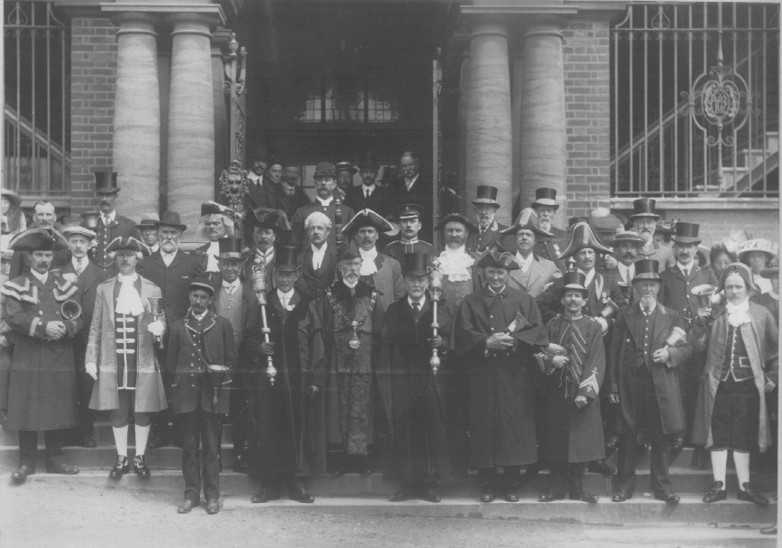 Can you identify where this group of Town Criers and Civic officials is posed?