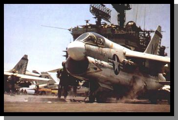 A Vought A-7A Corsair ll attack bomber prepares to launch from the carrier USS Constellation Picture 3 BACK