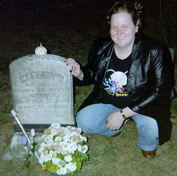Corrie-lynn at the grave of Exeter, Rhode Island's real "vampire", Mercy L. Brown (inspiration for Dracula). (Halloween 2004)