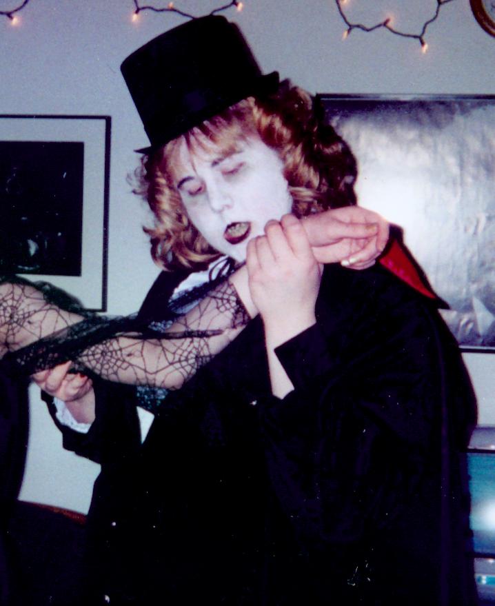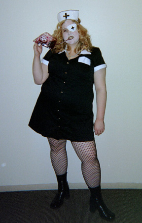 Corrie as a psycho nurse...or maybe an undead Daryl Hannah from Kill Bill?(Halloween 2004)