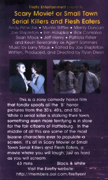 "Scary Movie! or Small Town Serial Killers and Flesh Eaters" has become Firefly Entertainment's most popular movie and is our first all black and white film. It also features the largest cast to date in a Firefly film. Since its premiere, "Scary Movie!" has become our most powerful and gripping film. It packed the house with standing room only for its premiere and was invited for multiple screenings at the Indiana University of Pennsylvania and the University of Pittsburgh at Johnstown.