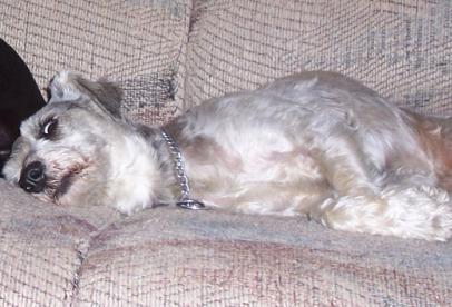 It features our dog, Sam, who is a purebred Miniature Schnauzer. This 24-hour webcam continually broadcasts his favorite spot, so that the viewers can see what a small, lazy Schnauzer does all day.