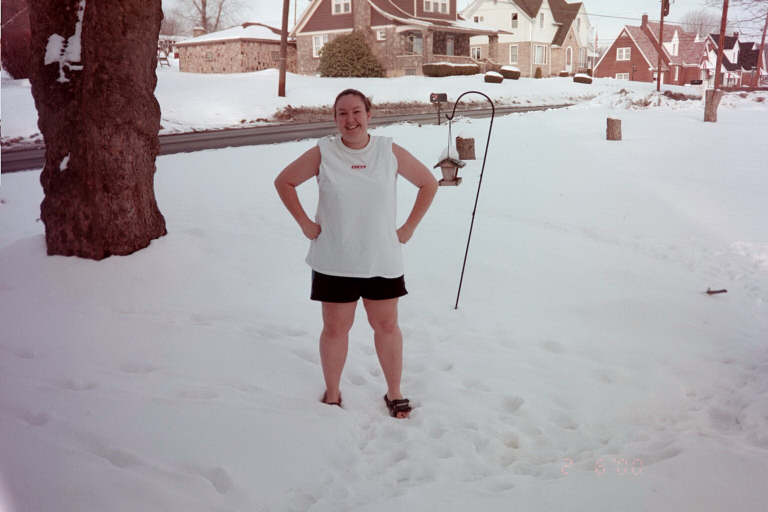 This is me standing in the snow in my shorts and sandals. The reason I did this was because I have a good friend in Lousiania, and she said its always hot there, and its always cold here. So I decided to take a picture of what would happen if our two places converged!!!!