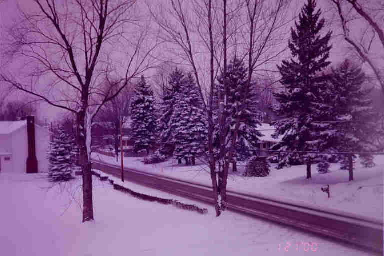 This picture is just one I took of the snow we get in Pennsylvania. This is the road in front of my parents house. And beleive it or not, thier driveway is in that picture too. We get alot of snow, but I like it!!