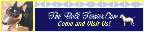 Starting Point These links are placed in ramdom order. This is a friendly warning, these pages are very addictive. You could be here for days, weeks, months, years looking at these links and their links. So make yourself a ham sandwich and a cuppa, leave the fridge door open so that Fido can help himself. *__* Bull Terrier Club Inc. (NSW) Bodalla Bull Terriers ~ Australia Trahern Bull Terrier ~ Australia North Island Bull Terrier Club Inc PatsyAnn's Favourite Links Bull Terrier Rescue Storm Barbary Coast Bull Terrier Club The Bull Terrier Club of America Patsyann's Page Gone To Dog Star Bull Terrier Org Welcome to Owen & Tia Home Brummagem Bull Terriers Amatol Bull Terriers ~ Australia Welcome to My Bully Page Boromir Bull Terriers ~ New Zealand Nogosi Bull Terriers ~ Australia Welcome to Jessie's Page Royal NSW Canine Council Ltd. The Bull Terrier Com ~ USA South Australia Bull Terriers Club Inc. Bully Listings ~ Breeders Internationally Corsaire Bull Terriers ~ USA Brugown Bull Terriers ~ Australia Fuzzy Faces Graphics Bullyoak Bull Terriers ~ Australia Ngosi Bull Terriers ~ Australia Kupula Bull Terriers ~ Australia Pet Net ~ Bull Terriers Bryonteez Bull Terriers ~ Holland The Bull Terrier Club Rock Hard Bullies (Hawaii) Activior Bull Terriers ~ England Dynabolic Bull Terriers ~ Australia Silly Chilly's Pet Postcards Bull Terriers Care Rescue ~ America Kinesis Bull Terriers ~ Australia Italian Bull Terriers Homepage National Bull Terrier Council Australia Melarbro Bull Terriers ~ Australia Bull Terrier Breed Council ~ UK Schardale Bull Terriers ~ Australia www.bullterrier.cx Brian Wade Bullies Bullywood Bull Terriers U.K. Bullacktiv Miniature Bull Terriers ~ Australia The above lovely bully heads gifs from and to see more go here