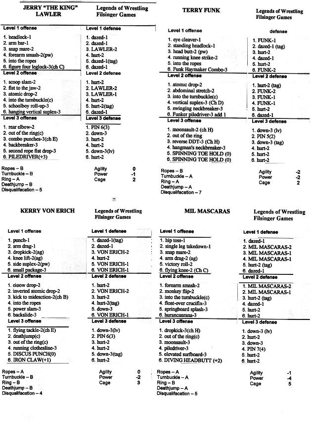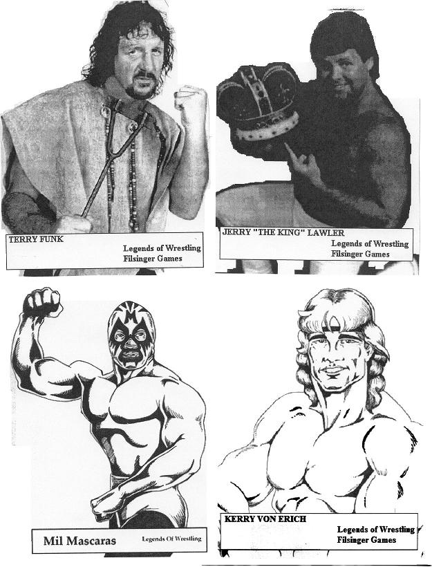 Template #2: Terry Funk (circa 1982), Jerry "the King" Lawler (circa 1985), Mil Mascaras, Kerry Von Erich pics / stats