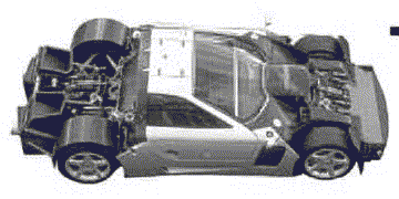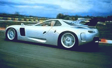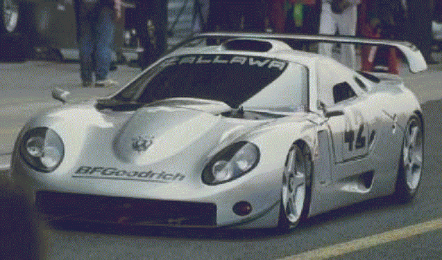 This is the immaculate Callaway C7. It is the epitome of American sports cars. Its body is formed in Germany and is designed by Paul Deutschman. The engine is a derivative of the famous Chevy Small block, as are all Callaway prepared sports cars. During the time it was competing in professional racing it was fantastic, but recent rules changes as well as other new cars, like the Porsche GT1 and the Mercedes-Benz CLK-GTR, have made this car an anachronism in professional racing. You can still get a similar car from Callaway, the Supernatural Le Mans, made for GT2 racing, but it has a less ferocious motor that only puts out 435 horsepower.