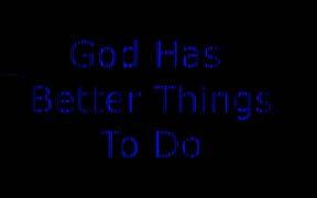 GOD HAS BETTER THINGS TO DO, like playing tennis with Jesus, Moses and Satan. Without one or the other the tennis match would be pretty uneven. And its Satan who always makes the first sexual move... so one day he raped God in the ass and God got pissed off, banishing him to the underworld. Yeah, and then Satan got pissed off and raped a few angels who felt disgraced and became his devils.... therefore making his tennis matches even. But up in heaven, there were only three to play tennis; God, Moses and Jesus, so they decided to get a hold of Noah and see what he was doing, but Noah was busy so they were still one short for a tennis match. Then God got a little put down for casting Satan down, ruining their tennis matches. So then God decided to send Jesus down to earth for awhile, leaving him and Moses to play singles for awhile while Jesus tried to get people to play in their matches, but instead, got them to follow him as if he were a god, and eventually getting himself killed for it. Though he probably wanted to die, he missed playing tennis... but they were still one short. So then they came up with a revolutionary idea: they would rotate... Jesus would play God, and then Moses would play the winner, it would go like that for the rest of time, none of them getting bored, and no one being left out.