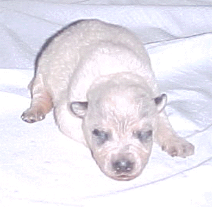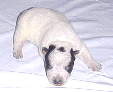 Heeler pups are born pure white and begin to "color" at about three to four weeks of