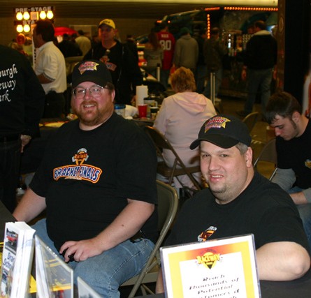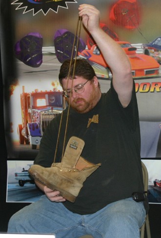 Shots from the World of Wheels car show January 20-21, 2007, at the Convention Center. First is Barry and Chuck manning the PRP booth, second is Chuck relacing his boot after Kevin Romeo reloaded the parachute on his Camaro, and last is Chuck in Scott's dragster.