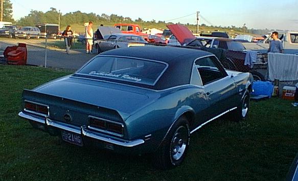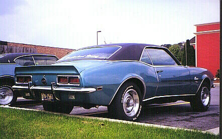 Name: Shamus "Uncle Jim" Maloney Age: 55 and still alive (but going on 5) Status: Married Car description: 1968 RS/SS Chevrolet Camaro w/ 350 c.i. engine and 4 speed Muncie tranny (all matching numbers). Color is original Dark Teal Blue w/ Black landau roof and Black RS striping. Interior is original Teal. 1968 original 4 speed upgraded with Hurst shifter. Original 350 engine built to 400 h.p. Custom true 3" dual exhaust w/ceramic coated Hooker Headers and Dynomax RPM race mufflers. Rally Sport headlights and instrument guages. Original red-line bias ply tires upgraded to BF Goodrich T/A radials with 15x8 wheels. Mickey Thompson D.O.T slicks utilized for drag racing. Mileage: 87,560 Started cruising/racing: Started Cruising May 1999 and Drag Racing September 2000. For Sale Soon! Future plans for the car: The engine, tranny and exhaust etc., are going back to original stock parts to be sold in the near future as an original California matching numbers RS/SS 1968 Camaro. Yes, it is a CA car with EGR pump! For those"GM Wannabe Experts" whom claim there is no such thing as an RS/SS, you may wish to revise your history research. Original numbers, protecto-plate and invoice available plus 36 years of maintenaince records.