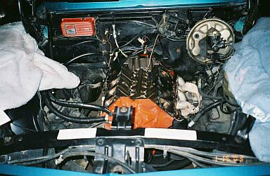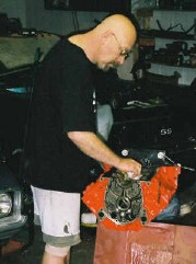 The Camaro's engine, getting ready to come out after the 2002 season.