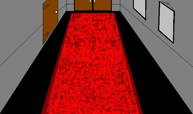 As you step through the door, you find yourself standing on an expensive oriental rug. A door is up ahead of you and there is one down the hall and to your left.