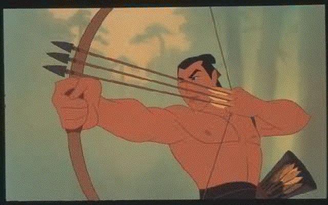 Okay, I'm done with my ranting. So why do I like this movie? First of all, Woman Power! (This was also why I liked Anastasia - it was she who destroyed Rasputin while Dimitri laid there like a lump, unconcious.) Yes, Mulan basically does everything. She figures out how to reach the arrow, she shoots the cannon which causes an avalanche and destroys most of Shan Yu's army, she saves Li Shang from the avalanche, she comes up with the plan to reach the Emperor, she saves Li Shang AGAIN, and she kills Shan Yu. Is that not cool? The one thing that makes me so sick in modern movies is the screaming, weak damsel in distress. When I watch those movies I wish I were a character so I could slap those girls across the face. You could never say Mulan was weak. I know that going to boot camp would kill me - she preserveres. Even when Li Shang dismisses her, she continues. If you think about it, you realize at that point, she could have left if she wanted to. Instead she chooses to stay and finally reaches the arrow.