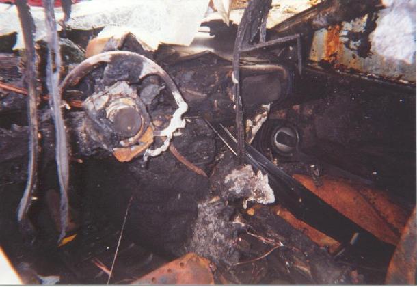 This is a picture of the Saturn's cockpit, notice only half the steering wheel and what once used to be a kick ass cd player.