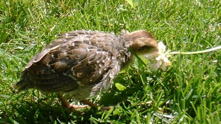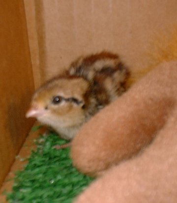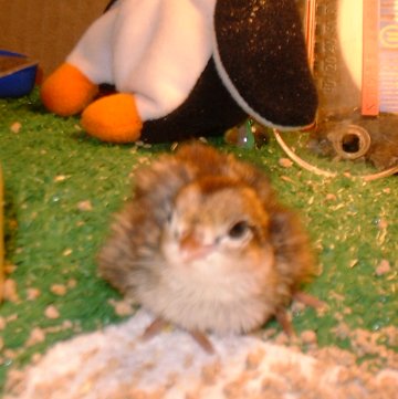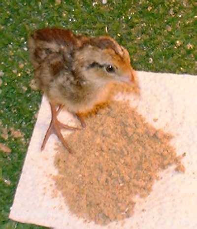 I'm 3 days old! I eat gamebird crumbles and hard boiled egg yolk.