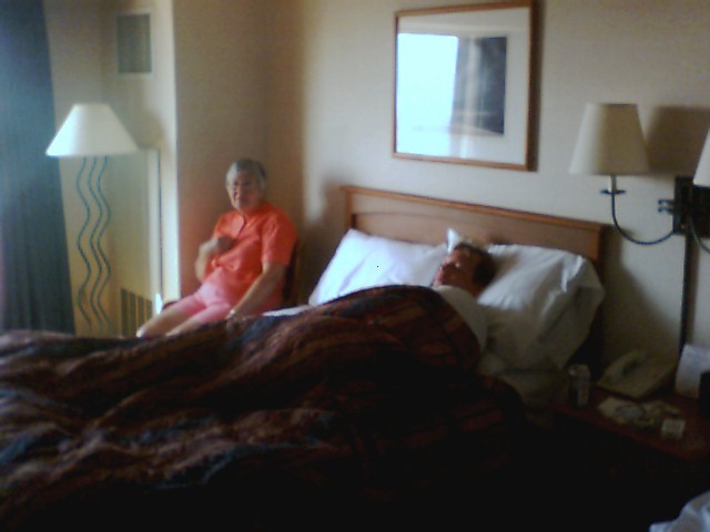 This is a picture of the Truckee River that runs through Reno. There is a River Walk and several municipal parks along the river. We walked along the river for several blocks on Monday afternoon. It was a beautiful day. | This is a picture of our hotel room at Harrah's. Mom and I tended to get up a little earlier than James did. |