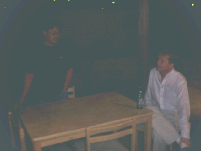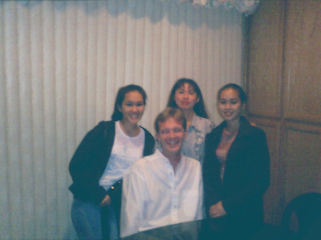 This is a picture of Tuyet and her nieces, Marilyn and Christine. Tuyet works in Final Test (where James used to work) at Applied Materials in San Jose. | This is James and Brian on Tuyet's patio (having a cigarette break - bad boys!). Brian works at Applied Materials, but is leaving to return to Kansas where his family lives. He lives with Tuyet and is her house boy (LOL). |