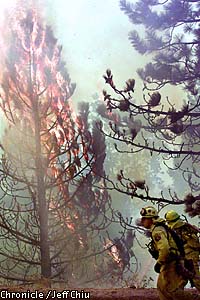 We stopped at Lake Tahoe and walked from the Casinos at State Line to the Lake. | On the way to Lake Tahoe, as we decended the final mountain, we stopped to take a picture of the lake. |