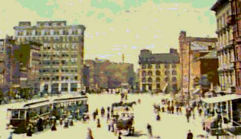 This picture of Market Square in Harrisburg was taken circa 1900. This is a view of Second Street looking north. If you look closely, you can see the obelisk that used to be at the intersection of Second and State Streets. This monument is now located on the William Penn Campus of Harrisburg Schools along Division Street. |