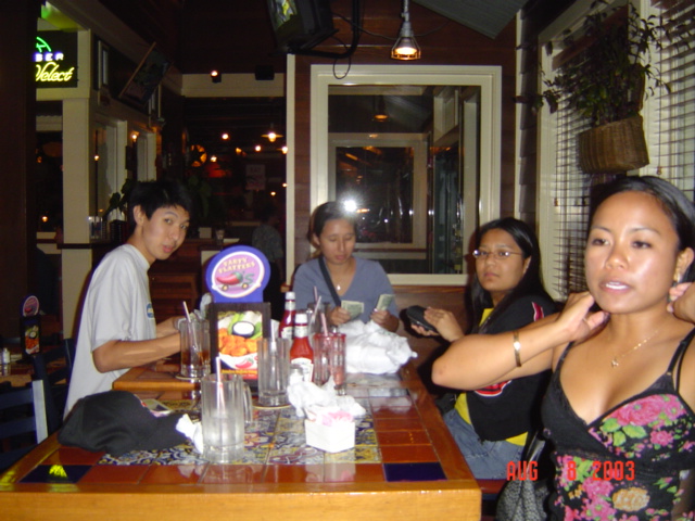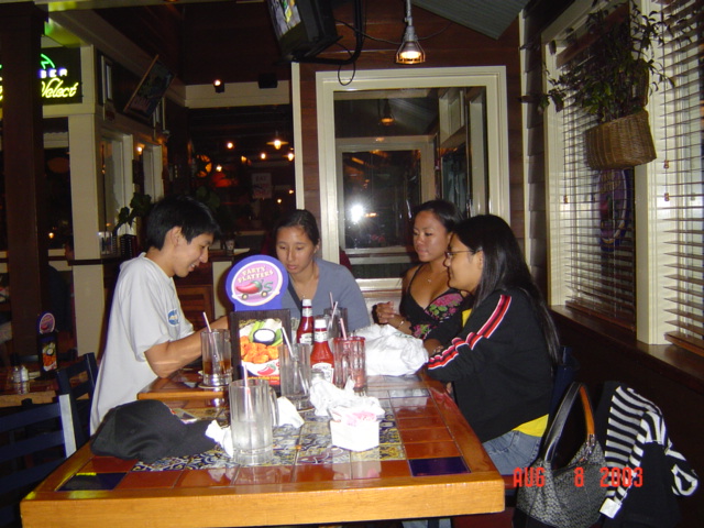 Here are pics of us at Dole, Chili's, & Hawaiian Brians on our last outing with Kat for the summer on 8/30/03. We watched SWAT, had the TACO incident ;), and waiting a hella long time to play pool.