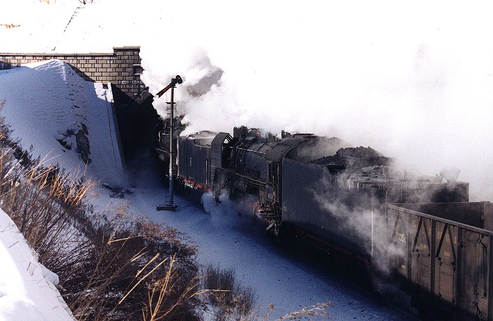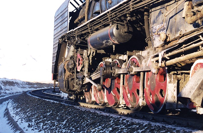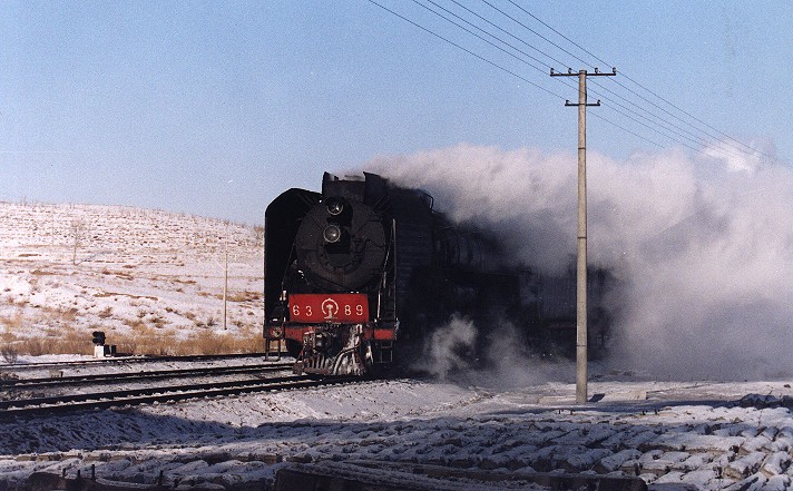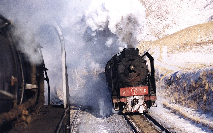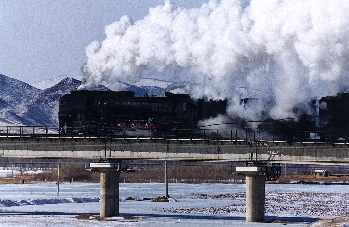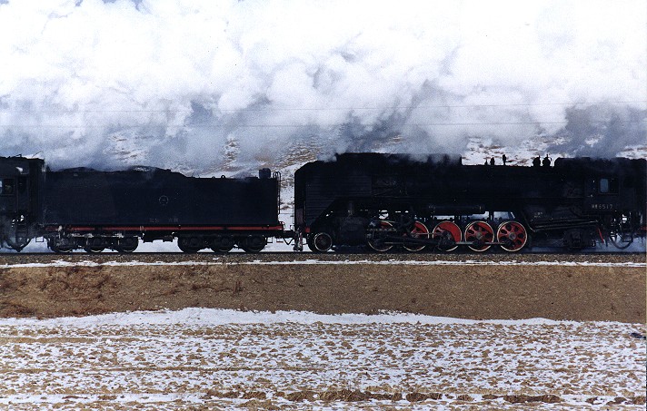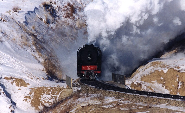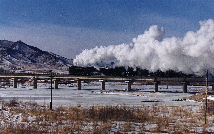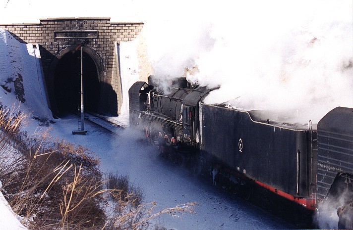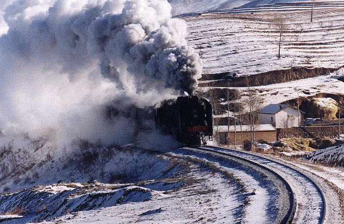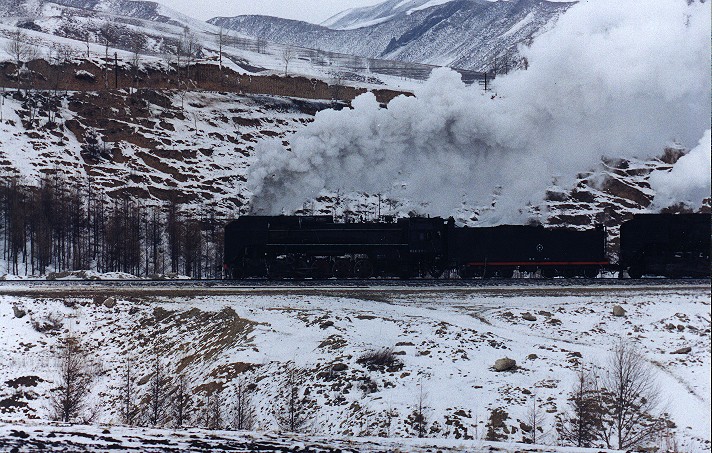 In January 1999 I went to the Ji-Tong Line (also known as the Jing Peng Pass) in Inner Mongolia, PRC. I organized a tour by Mr. Li Weishu . At least it wasn’t as cold at nighttime! I spent 5 days on the pass, with driver Mr. Li (a different Mr. Li) and guide Tina, a.k.a. the ‘Queen of Chifeng’ amongst railfans. During my time here I encountered the coldest temperatures I’ve ever been in, ranging between –20 and –60 degrees centigrade. This place is the most beautiful place I’ve ever been to, but it is not the easiest trip to do. The cold alone would be enough to put the average person off, but for photographers I guess the Jing Peng Pass could be called the final frontier. I would love to get the opportunity to travel there again before steam trains disappear from the earth forever (predicted between 3-8 years), although with many commitments, this looks like a goal out of reach at present.