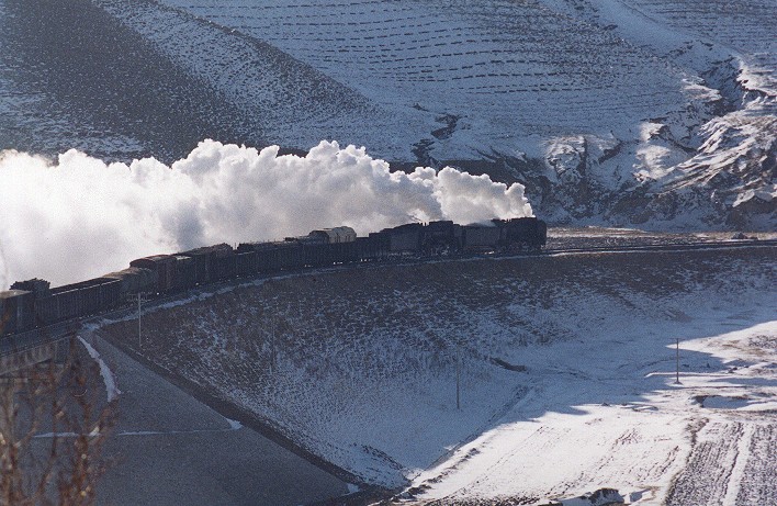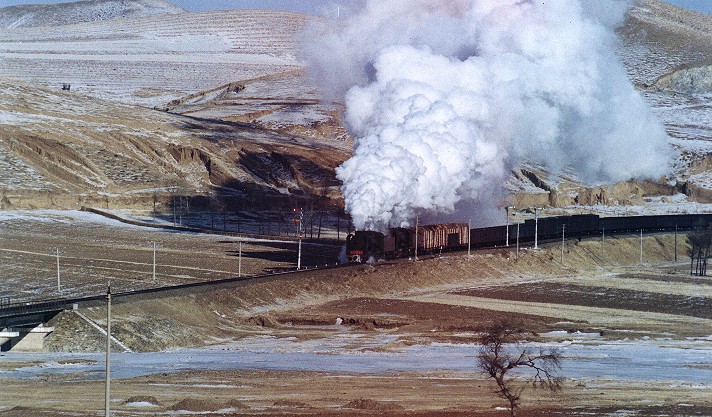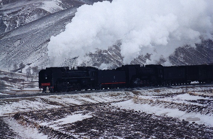 Another Mixed freight headed by QJ 6155 and QJ 6389 January 18, 1999 - Inner Mongolia, PRC.