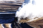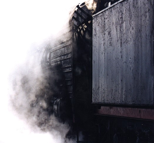 The next and final place we saw this train was at the east side of the Summit where it put on a magnificent show of steam coming up through the cutting. 18th of January 1999.