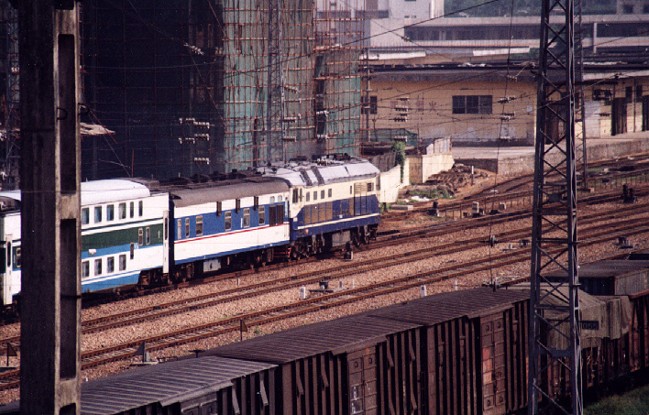 DF11's heading for Shenzhen. Some of these trains went as far as Hung Hom (Hong Kong's international railway station). May 28, 2001.