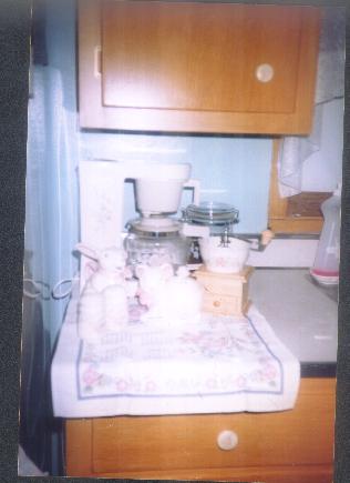 The Knobs on her cabinets and shelf paper all match . She is lucky enough to